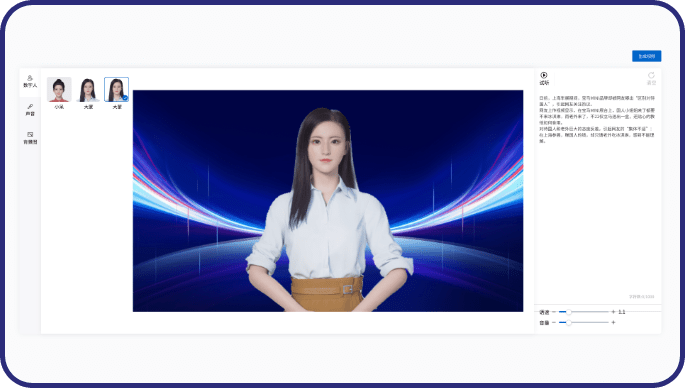 我們可以為你OEM定制{{basicData.title}}一模一樣的數(shù)字人平臺
